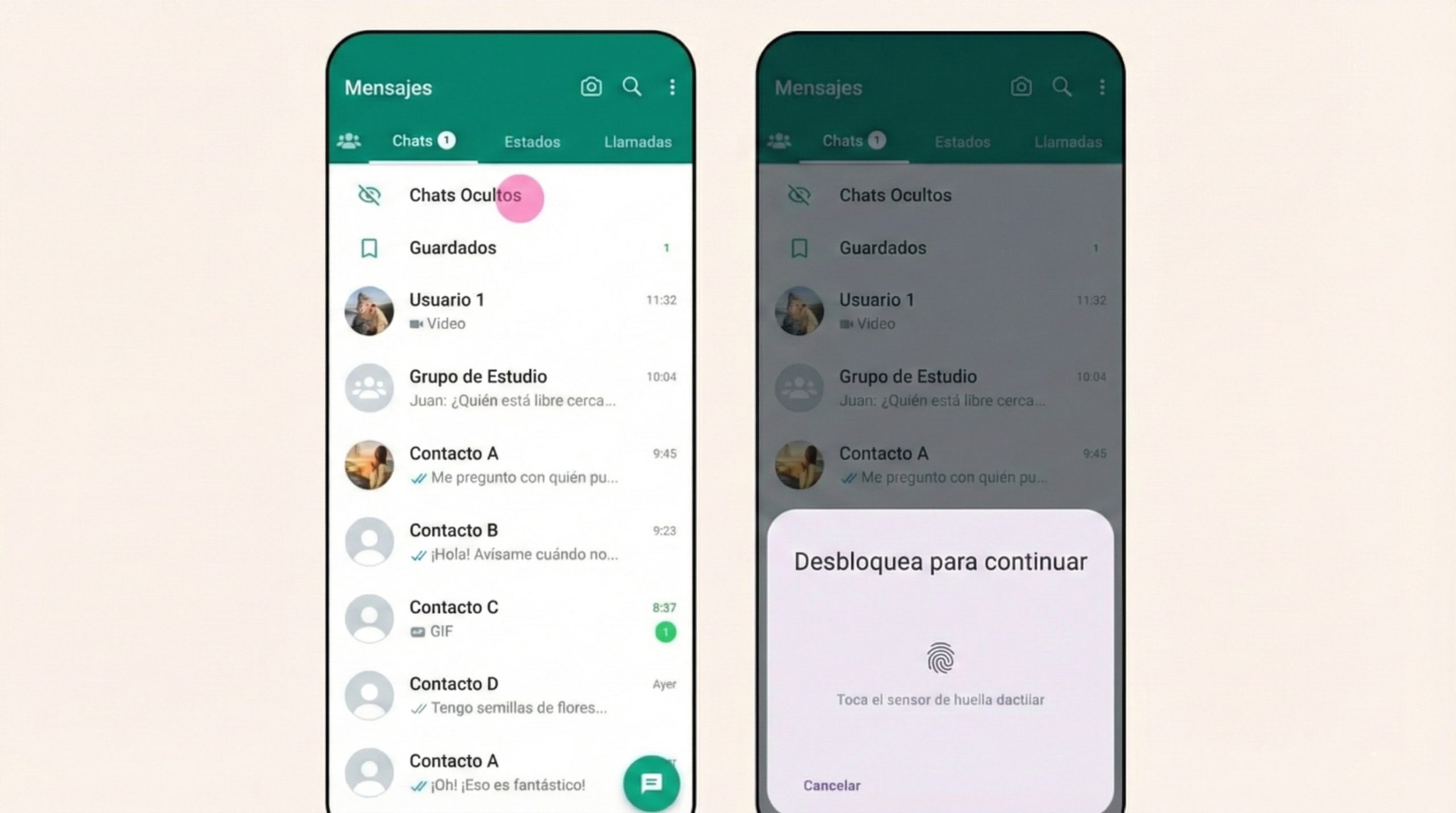 Esos chats desaparecen de la lista principal y solo se pueden ver si el usuario conoce las claves de acceso.